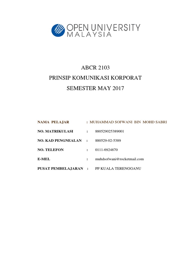 Contoh Assignment Untuk Prinsip Komunikasi Korporat Abcr2103